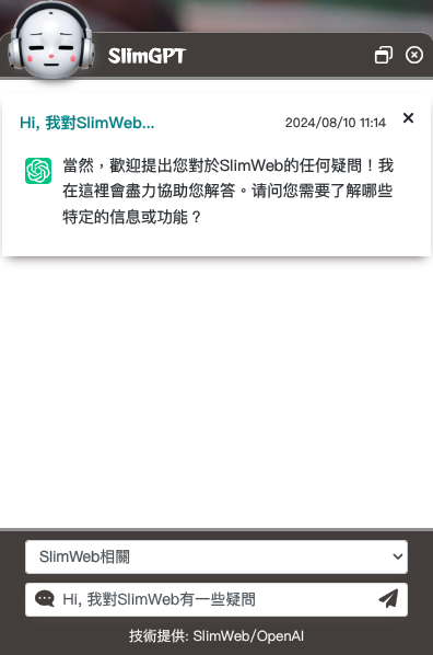 SlimGPT的核心就是ChatGPT, 所以會跟隨著ChatGPT一起進步。